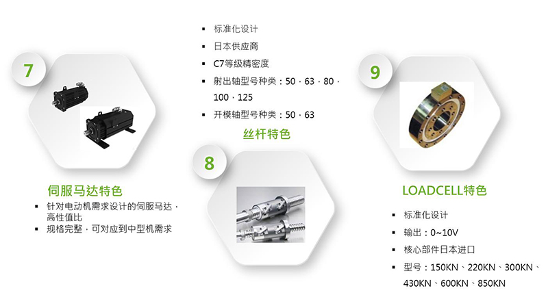全電動立式注塑機所有動作單元采用伺服電機驅動,含開合模、調模、射出、儲料、座進退;無任何液壓油,干凈清潔靜音。