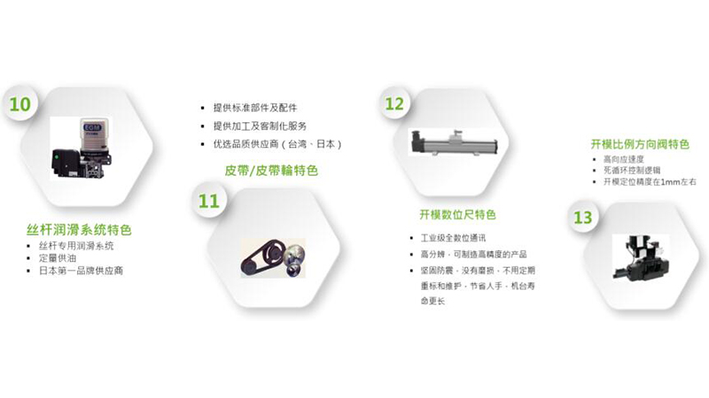高精密射出系統(tǒng),最大射出速度可達800mm/s,射出位置重復精度±0.005mm。